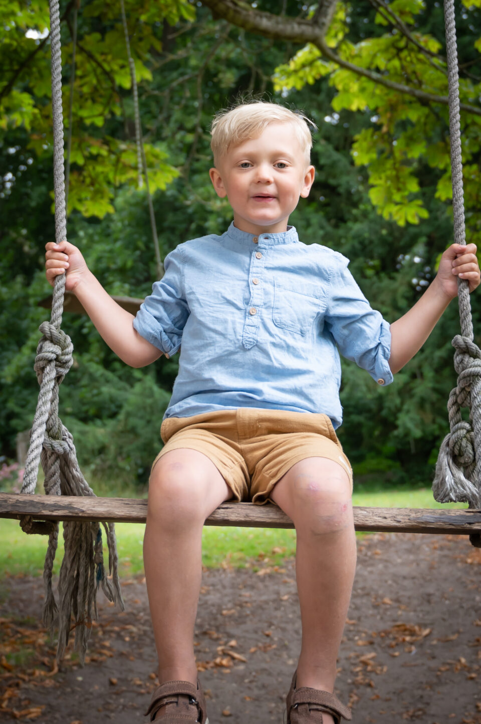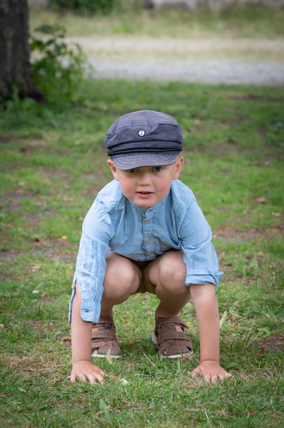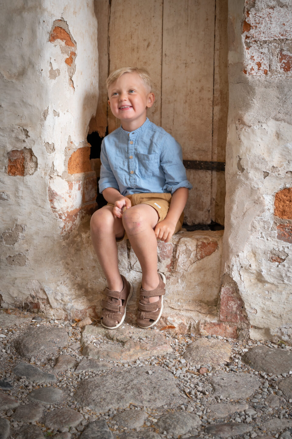 En fartfylld familjefotografering med springtävling och såpbubblor.