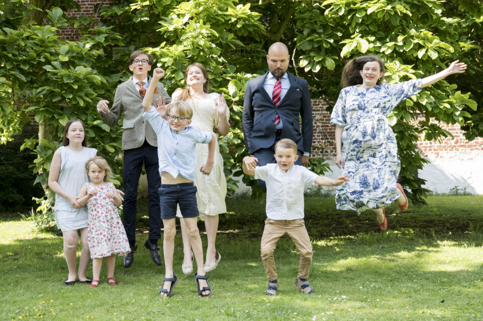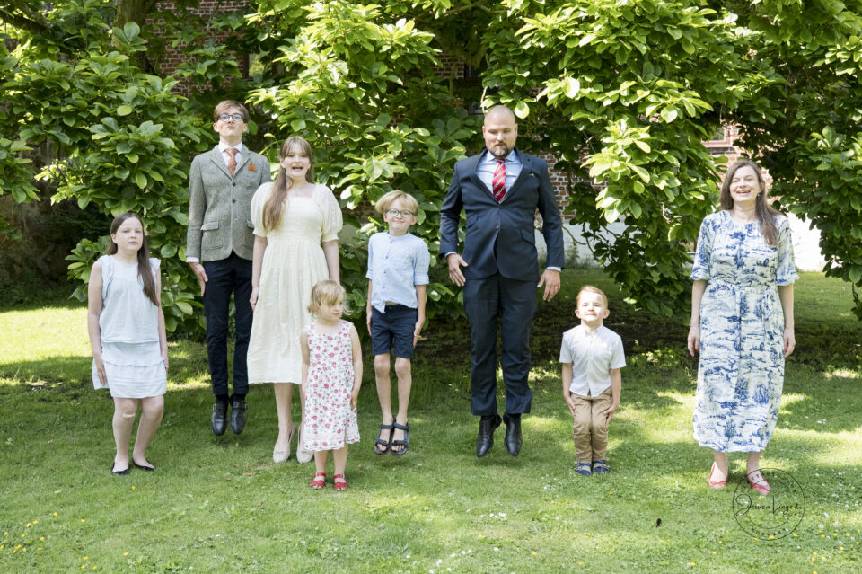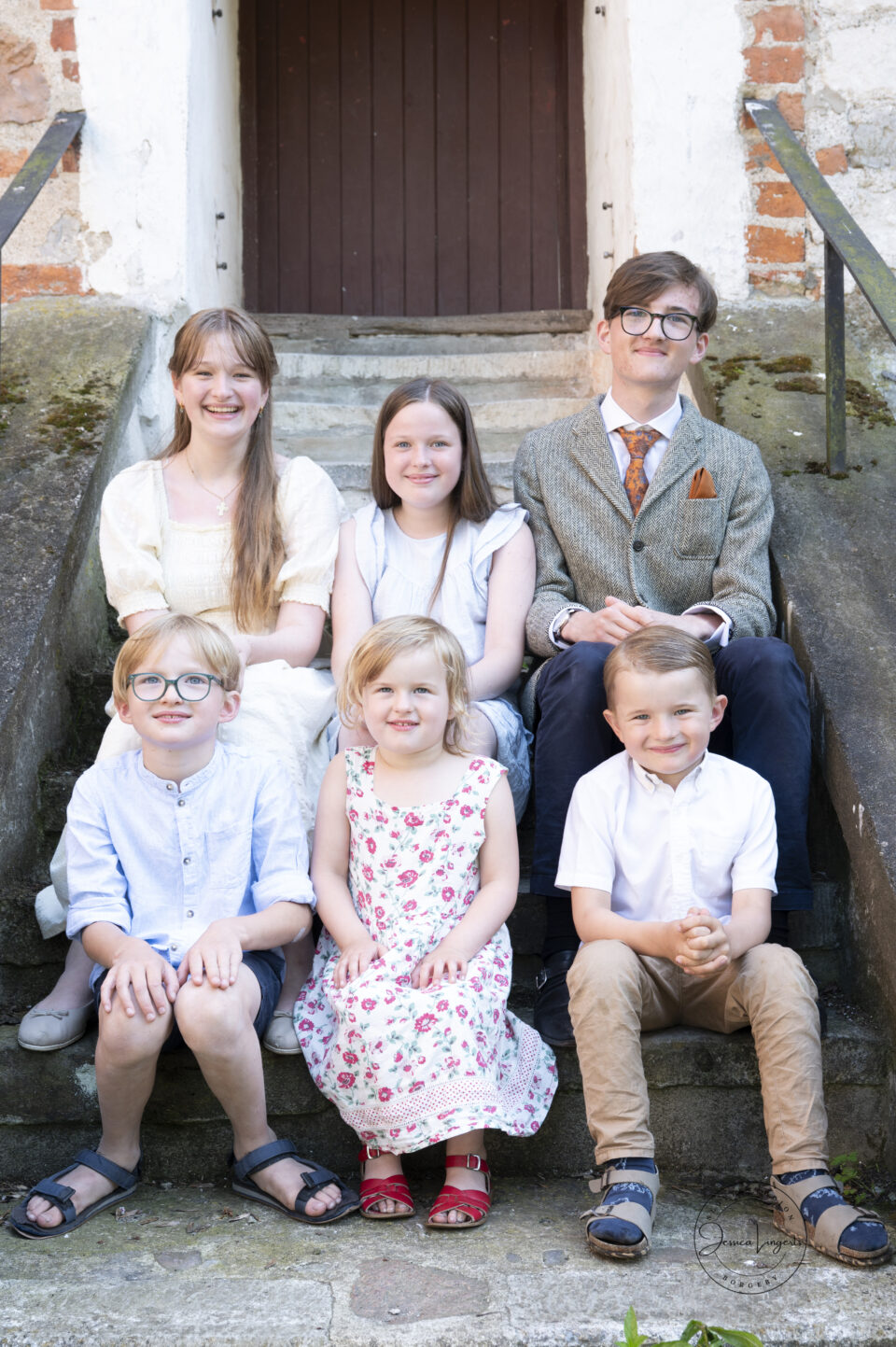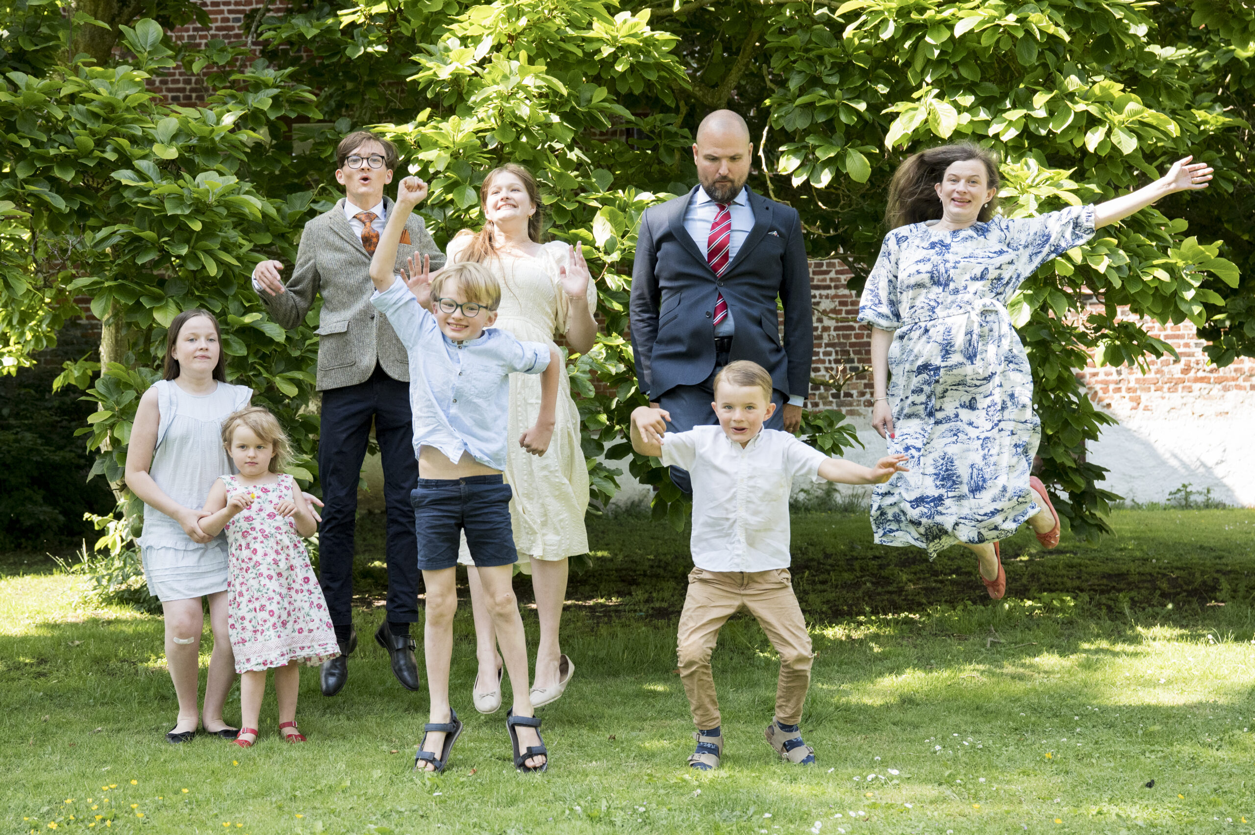 Sommar, bus, grönska – en härlig familjefotografering med den stora familjen Karlgren.