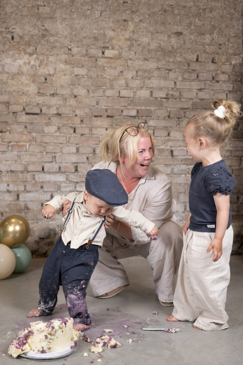 Familjefotografering och smash the cake med blivande 1-åring! Måns tog sig an tårtan med stor försiktighet, till en början i varje fall. Storasyster ville också smaka och sedan var kalasandet ett faktum! Kladdigt och alldeles underbart! Tillgång till dusch finns såklart efter sessionen.