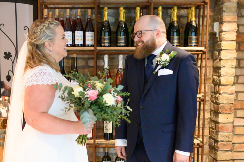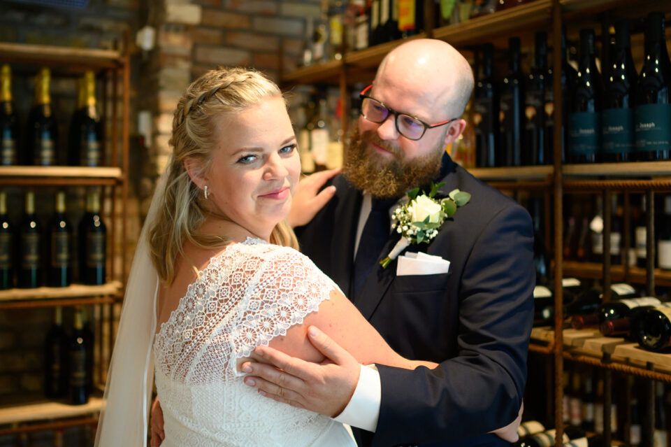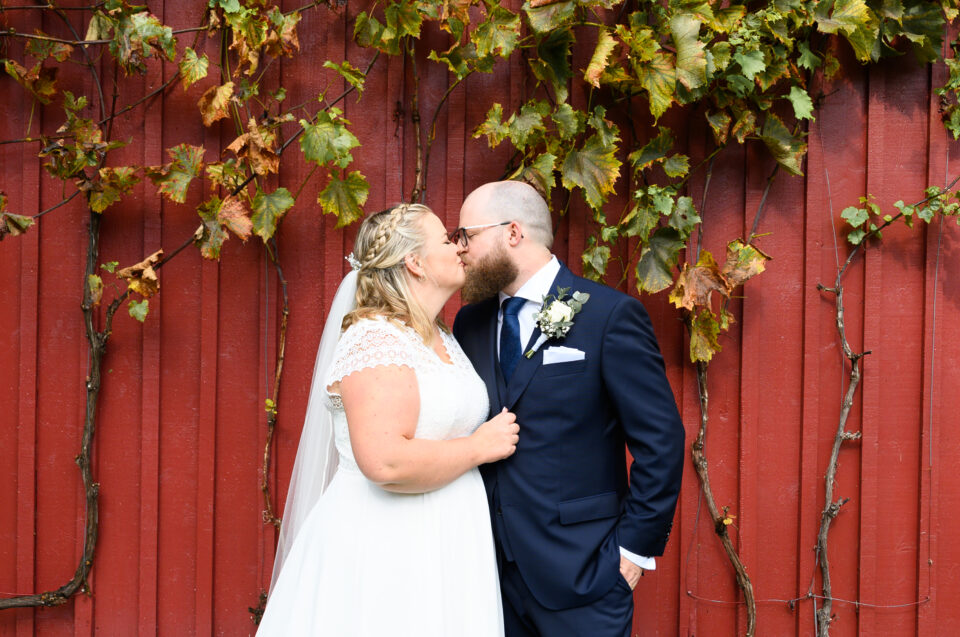 Första gången jag träffade Jossan och Ola var genom Löddebygdens Församling och Kyrkisverksamheten. Årligen erbjuder jag i samarbete med kyrkis barnfotografering och familjen nappade på erbjudandet. Då det var dags för bröllop frågade dom mig om jag hade möjlighet att föreviga deras stora dag? Såklart, ja! Porträttfotografering och festligheter skulle ske på Flädie Mat & Vingård, vigsel i Västra Karaby Kyrka. Dagen började med paraplyer, ösregnet var ett faktum. Det gällde att vara kreativ! First look…. – det går inte att ha första mötet i vingården som planerat, var ska vi ha den? Efter lite funderingar frågade jag Madeleine som jobbar på Flädie Mat & Vingård, alltså – kanske en konstig idé men får man gå in i ert stora vinrum, den gigantiska vinkylen? Javisst svarade hon, jag ska bara låsa upp den. En minnesvärd och unik First Look gick alltså av stapeln bland dyrgriparna i en av de största vinkylarna jag någonsin sett.