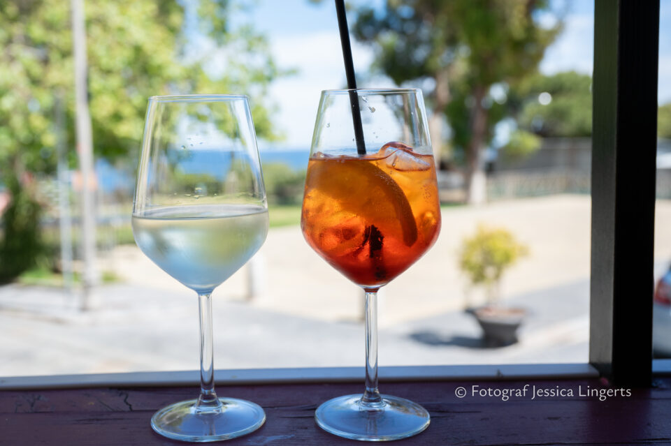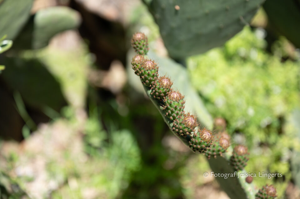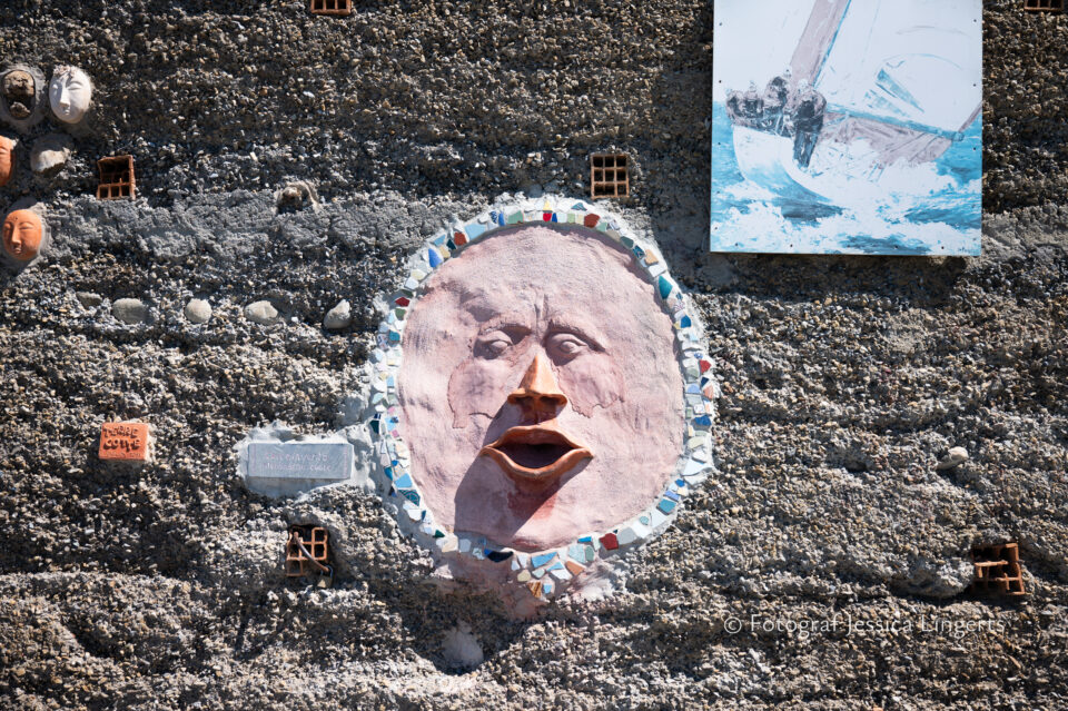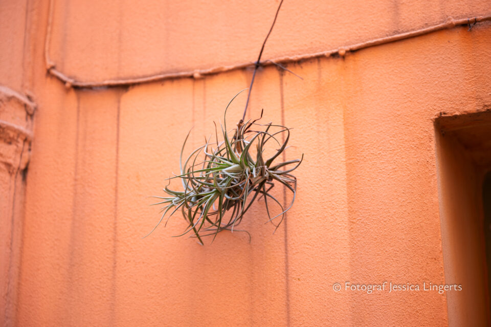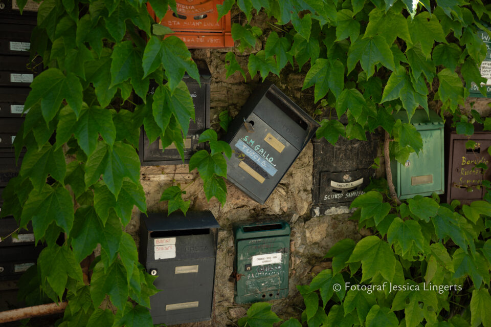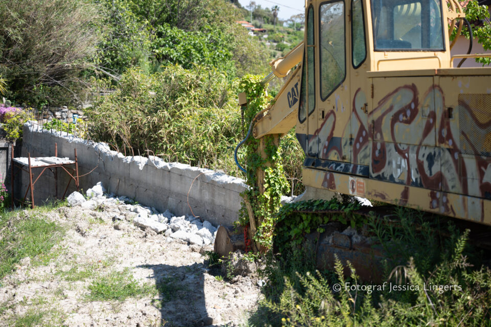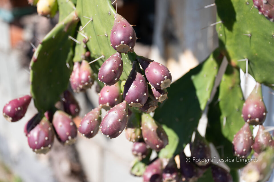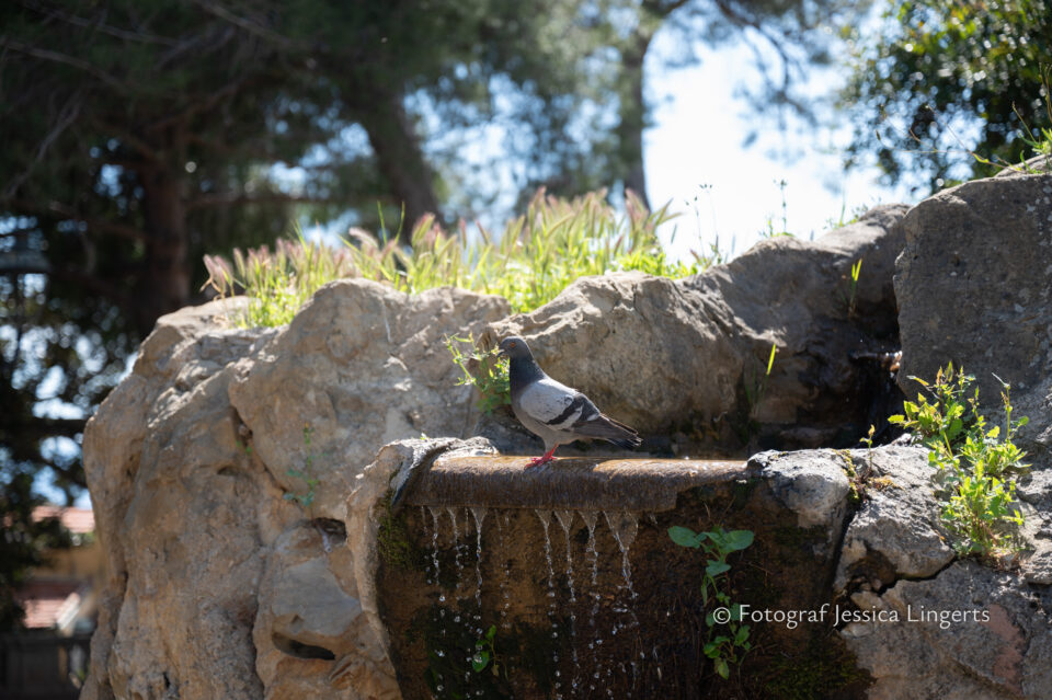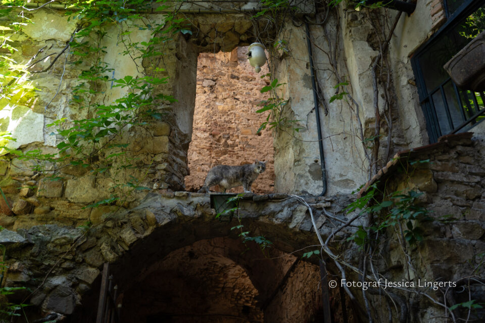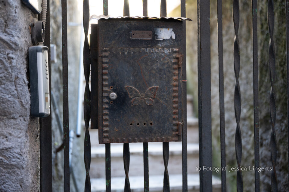 Frukostfrossa igen! Men, nu hade vi lärt oss vilken sorts kaffe vi skulle trycka i maskinen. Det var vi två och några få gäster till i matsalen så det blev ännu en lugn och skön frukost. Målet för dagen var Bussana Vecchia, “spökbyn” eller “konstnärsbyn” som den också kallas. 66 personer är bosatta i byn och det tog en 20 min bussfärd, promenad i en gullig by (viss del av promenaden hade kunnat undvikas om vi startat google maps) och en otroligt lång snirklig stig för att komma dit. Man kunde tydligen köra bil nästan hela vägen upp, men då hade vi inte sett allt det vi fick se. Enligt min app så gick vi 24 våningar uppåt, det var långt och det var varmt men vilken upplevelse! På den slingrande uppåtgående stigen fick vi se eucalyptusodlingar, citronträd, apelsinträd, en ödla, kaktusar, passionsblommor och till min stora förtjusning några Macaonifjärilar. När vi kom upp för kröken så kunde vi se växthusen ovanifrån, de som vi tidigare sagt “kolla på växthusen långt däruppe”. På första parkett efter kröken låg världens mysiga lilla restaurang, vi var ju såklart törstiga och lite småhungriga (vi hade ju faktiskt gått jättelångt) så prosecco, aperol spritz och bruscetta med tomater satt som en smäck. 200 meter upp fanns sedan målet för dagen Bussana Vecchia. 1887 drabbades staden av en jordbävning. Staden förstördes, och myndigheterna beslutade att uppföra en ny stad i närheten, det nya Bussana “Bussana Nuova”. På 1960-talet kom det konstnärer och hippies dit och de byggde upp staden igen. Spännande va? Här kan man läsa mer: