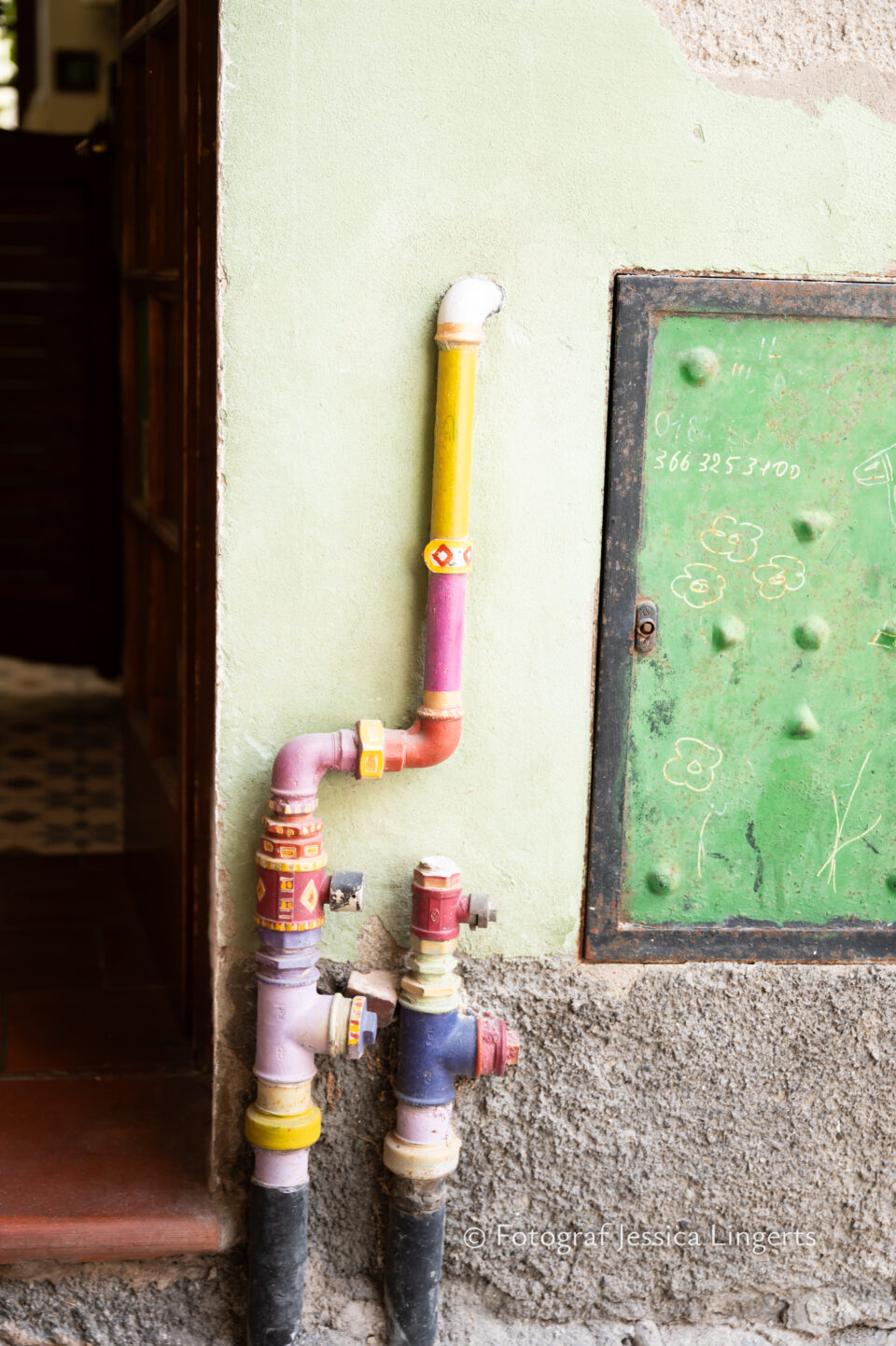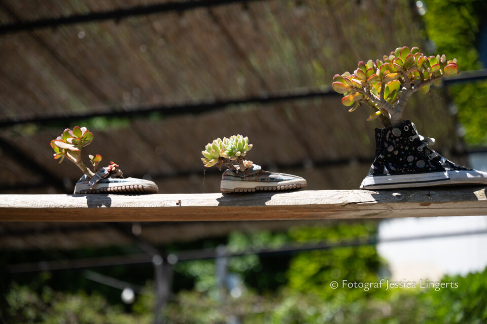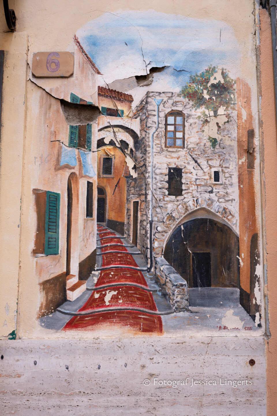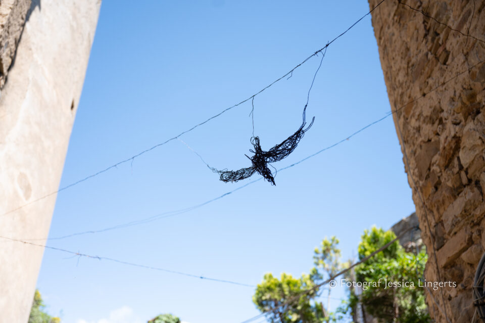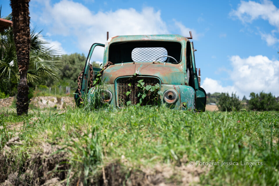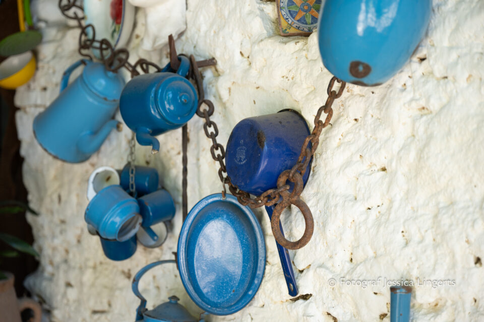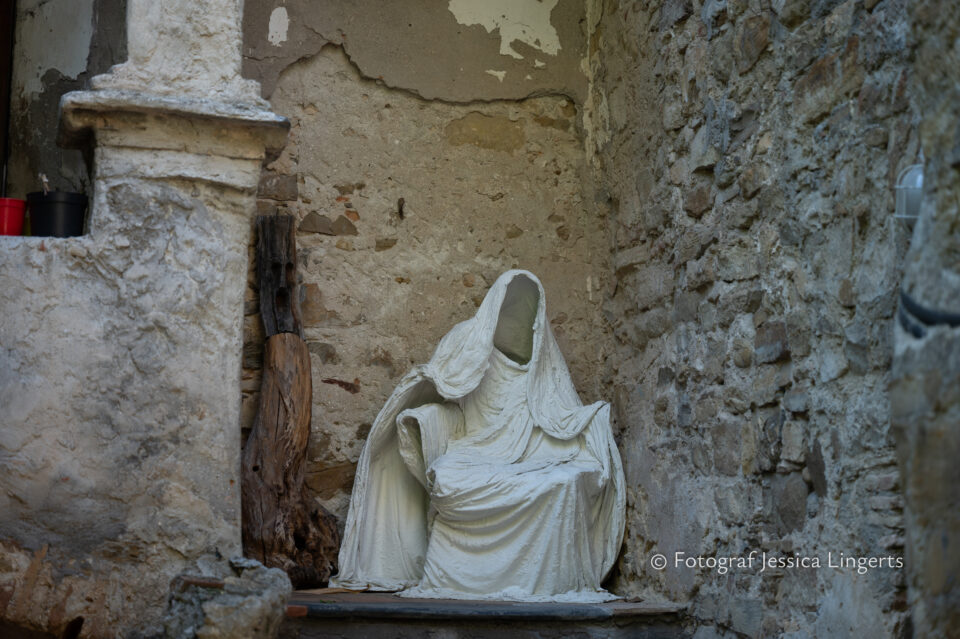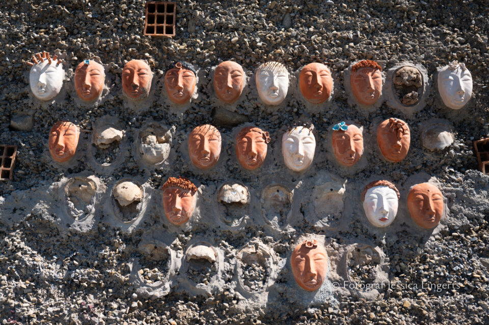 Frukostfrossa igen! Men, nu hade vi lärt oss vilken sorts kaffe vi skulle trycka i maskinen. Det var vi två och några få gäster till i matsalen så det blev ännu en lugn och skön frukost. Målet för dagen var Bussana Vecchia, “spökbyn” eller “konstnärsbyn” som den också kallas. 66 personer är bosatta i byn och det tog en 20 min bussfärd, promenad i en gullig by (viss del av promenaden hade kunnat undvikas om vi startat google maps) och en otroligt lång snirklig stig för att komma dit. Man kunde tydligen köra bil nästan hela vägen upp, men då hade vi inte sett allt det vi fick se. Enligt min app så gick vi 24 våningar uppåt, det var långt och det var varmt men vilken upplevelse! På den slingrande uppåtgående stigen fick vi se eucalyptusodlingar, citronträd, apelsinträd, en ödla, kaktusar, passionsblommor och till min stora förtjusning några Macaonifjärilar. När vi kom upp för kröken så kunde vi se växthusen ovanifrån, de som vi tidigare sagt “kolla på växthusen långt däruppe”. På första parkett efter kröken låg världens mysiga lilla restaurang, vi var ju såklart törstiga och lite småhungriga (vi hade ju faktiskt gått jättelångt) så prosecco, aperol spritz och bruscetta med tomater satt som en smäck. 200 meter upp fanns sedan målet för dagen Bussana Vecchia. 1887 drabbades staden av en jordbävning. Staden förstördes, och myndigheterna beslutade att uppföra en ny stad i närheten, det nya Bussana “Bussana Nuova”. På 1960-talet kom det konstnärer och hippies dit och de byggde upp staden igen. Spännande va? Här kan man läsa mer: