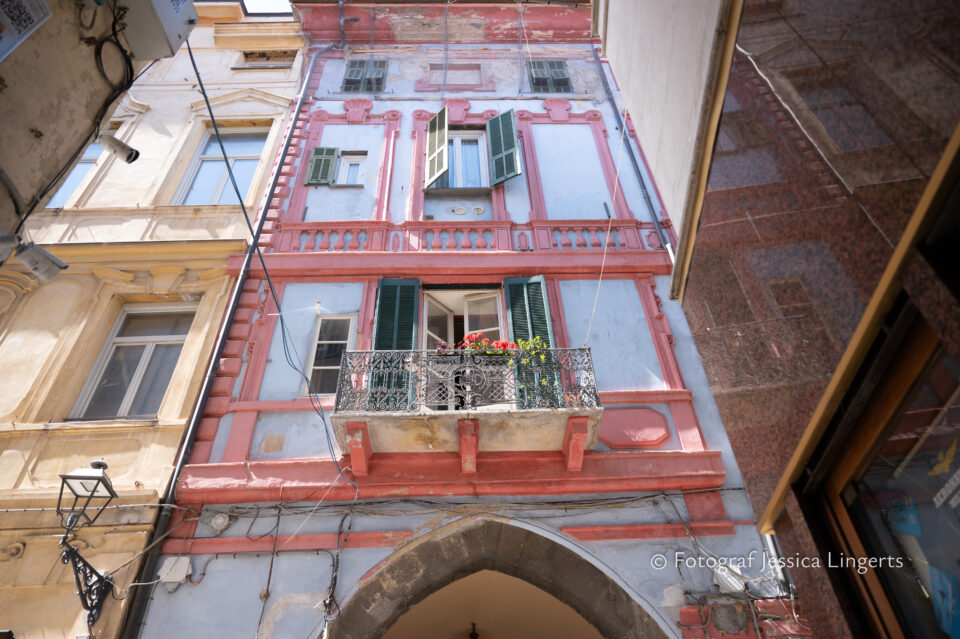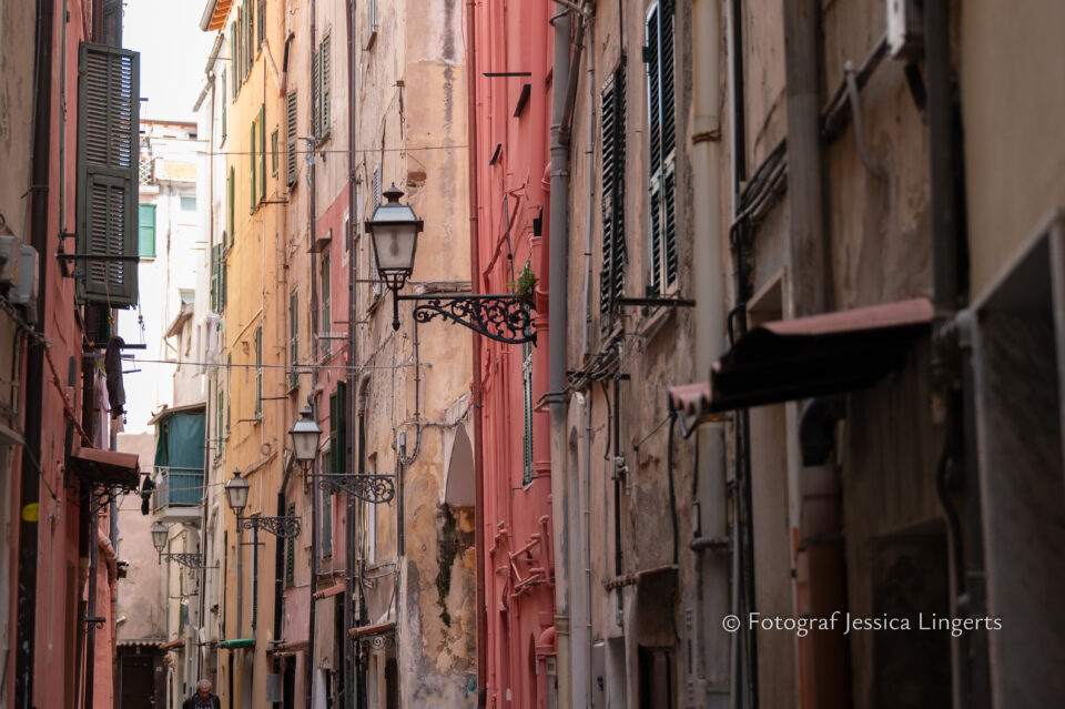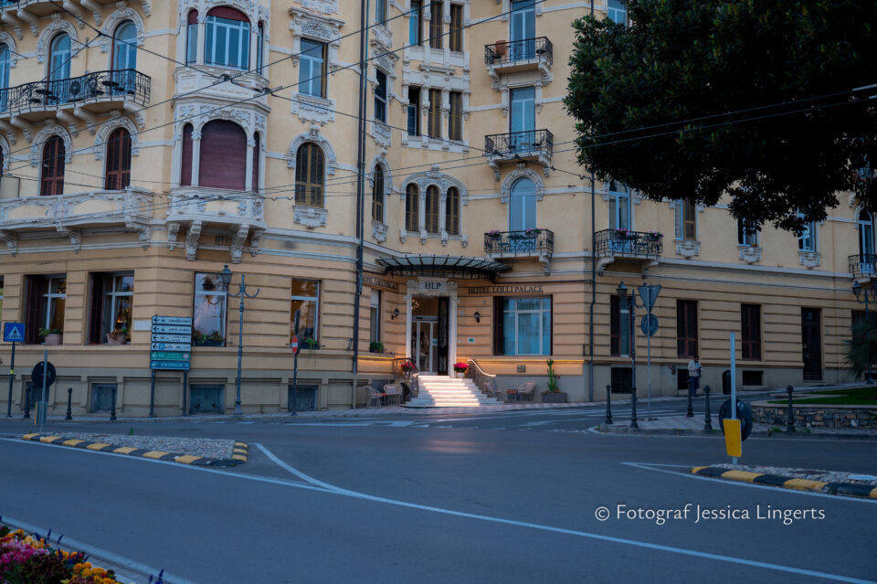 Flyg från Cph till Nice, på flygplatsen fick vi information om att ta en “tram” (typ spårvagn) till tågstationen en km bort. Den nybyggda tågstationen i Nice var lite av en labyrint, men några hjälpsamma damer såg förvirringen hos dessa två damer och hjälpte oss så att vi kom rätt. Att lösa biljett i en fransk automat med text på franska fick oss fulla av skratt, men jodå en biljett för två personer till italienska Ventimiglia löstes och vi kom på tåget. En timme från Nice till Ventimiglia tog det med tåg, när vi kom av tåget var vi inte säkra på vilket århundrade vi kommit tillbaka till. Stationen var gammal och när tåget till Sanremo kom så brast vi ut i skratt – vad i hela fridens namn? Om stationen var gammal, så var tåget uråldrigt. Upp med väskorna på tåget (två höga trappsteg) och sedan slog vi oss ner. Många tunnlar och vidunderlig utsikt däremellan så kom vi fram till Sanremo. Två mil, eller kanske inte – men det kändes som två mil, gick vi i en tunnel för att komma ut på andra sidan tågstationen. Därefter taxi till hotellet som bara låg 10 minuter bort med bil. Hotellet Lolli Palace låg på ett hörn där ena sidan vätte mot havet och den andra mot en väg, foajén var charmig och rummet likaså. Men, vi fick ett rum med tre smala fönster och ingen balkong som jag tog förgivet att vi skulle få. Hade förstås bara inbillat mig att vi bokat rum med balkong, men då det faktiskt fortfarande är lågsäsong så tänkte jag – ah, jag kollar om vi kan få byta rum till ett med balkong. Det fick vi och wow vilken utsikt! Mot en park och mot havet, ljuvlig balkong av gjutjärn. Där satte vi oss direkt och jag överraskade min bättre reshälft med nötter och medhavd prosecco som intogs ur pappmuggar. Härlig dag! Det blev kväll och vi bestämde oss för att “göra stan”, eller i varje fall gå ut och äta. Efter många wow och kolla där, byggnaderna och gränderna var makalöst fina så stannade vi till på ett torg där Margaritha och spaghetti di mare lockade oss. Det var kallt, jättekallt på kvällen så vi blev lite huttriga och begav oss hem till vårt fina hotell där vi packade upp och intog ryggläge. Jag hann knappt att säga godnatt innan jag somnade och oj vad jag sov – i 11 timmar!