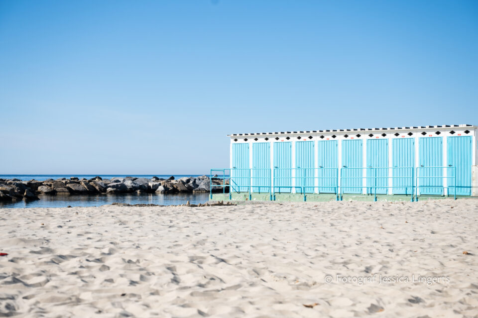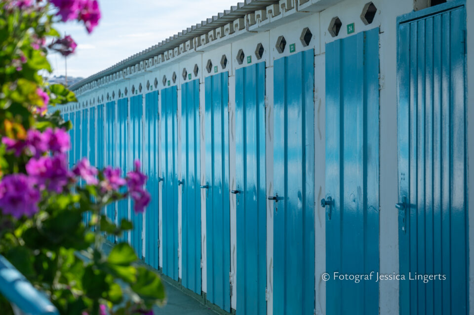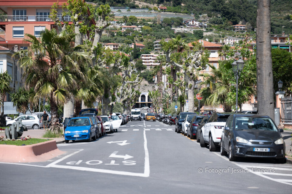 Men vad är detta? Frukostmatsalen var full av folk! Kö till kaffemaskinen och ingen fruktsallad? Hmmm… ingen prosciutto, ingen god ost, ingen nutella (inte för att jag saknade den…. ;)), ingen yoghurt, ingen mozzarella, inga tomater, ingen skål med mandel ej heller valnötter. Vår gissning, hotellet sparade lite på tillgångarna när det förväntades många gäster. Italien firar Kristi Himmelsfärd på söndagen efter torsdagen som vi firar och som Fransmännen firar. Det var alltså helgdag i Frankrike, men inte i Italien – självklart kom det många Fransmän! Det märktes, inte bara i matsalen vid frukosten utan även på gator och torg. Efter frukosten, som tyvärr inte blev någon frossa gick vi ner till stranden nedanför hotellet. Jag hittade en grind som var öppen, brydde mig inte om att fråga någon utan låtsades som att jag var klubbmedlem och hade självklart rättighet att vara där. Det var ingen som tog någon notis om mig och min kamera så jag kunde sukta efter ett dopp i det blå utan att någon ifrågasatte mig. Tillbaka till hotellet då det var dags att packa det sista och checka ut. Då säger min kloka vän “vi frågade aldrig om priset på det nya rummet”. Ojsan, nä det gjorde vi inte. Men – det kostade inget extra! Vi satte in våra väskor i ett undanskymt och låsbart rum och sedan tog vi oss ut på stan. Det var varmt, riktigt varmt men vi hade vårt mål klart för oss. Det skulle shoppas godsaker. Efter vi inhandlat vår parmesan och salami så satte vi oss ner på det torg där vi hamnat ett par gånger tidigare, kaffepaus. Glass och sedan lunch på ett annat torg där jag åt lasagne och Tina spaghetti med grönsaker. Paltkoma, det var inte de små portionerna. Så var det dags att gå tillbaka till hotellet för hämtning av väskor och uppfräschning innan det var dags för taxi mot Sanremos tågstation. Från Sanremo till Ventimiglia, Vi ansåg att vi hade tid för att se Ventimiglia och beslöt oss för att hoppa av tåget. Vi promenerade ner mot havet med drinkar som mål på en fin servering, “det är stängt” sa servitrisen när vi kom med våra resväskor. Hmmm… höll dom på att stänga eller var vi inte välkomna med väskorna? Hur som helst så gick vi tillbaka mot stationen och satte oss på ett mysigt litet fik. Jag tog upp telefonen för att kolla tågtiderna och inser att hoppsan, vårt tåg går om 15 minuter. Vi tog hastighetsrekord på att skölja ner en drink, en kopp kaffe, betala, toabesök och springtur med 20-kilos väskor till stationen. Vi hann! En svettig tur med diverse irritationsmoment i form av överhettade småbarnsmammor och barnvagnar. Vi med våra stora resväskor var rätt så i vägen tyckte man. Tåget kom inte så långt, på stationen i Menton rusade det på 8-10 poliser som uppenbarligen letade efter någon eller något. Vi vet inte om dom lyckades men efter en stund så fortsatte tåget och vi andades ut. Tåget fortsatte mot Nice och där hoppade vi av, efter några hissfärder upp och ner, över en bro, tillbaka, ner igen så hittade vi ut från denna labyrint – den nya stationen kommer att bli väldigt fin och säkert väldigt bra när skyltar kommer upp! Tram den sista kilometern och där satte vi oss i solen och njöt den sista timmen innan det var dags för oss att gå in mot terminalen.