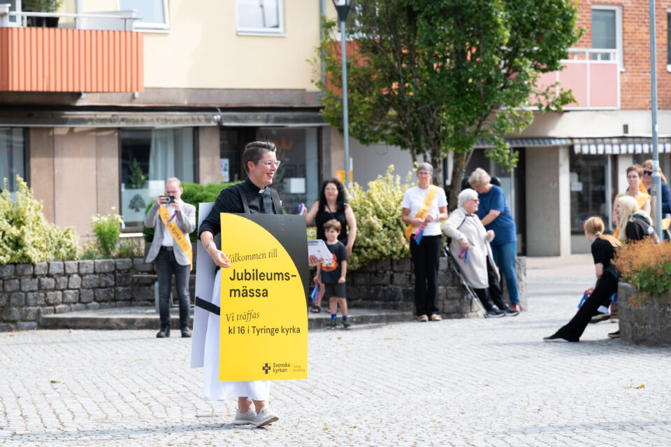 På lördageftermiddagen gick ett Festivaltåg med säckpipa genom byn, få i Tyringe kunde undvika att kyrkan fyllde år. Under Jubileumsmässan sjönga samma psalmer som sjungits när kyrkan invigdes 1925. Det blev ett högtidligt firande med historiska inslag. På söndagen sloga dörrarna upp till Stora salen i Kyrkans hus. Där väntade ett flertal konstverk, skapade av församlingsbor och inspirerade av Tyringe kyrka.