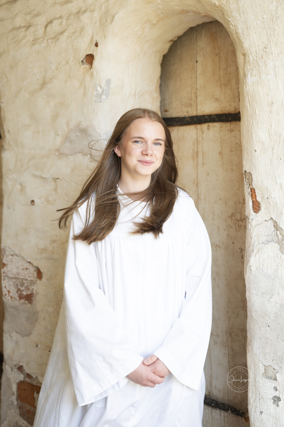 Emmy kom till mig i Borgeby för konfirmationsfotografering efter hennes konfirmation i Löddeköpinge Kyrka