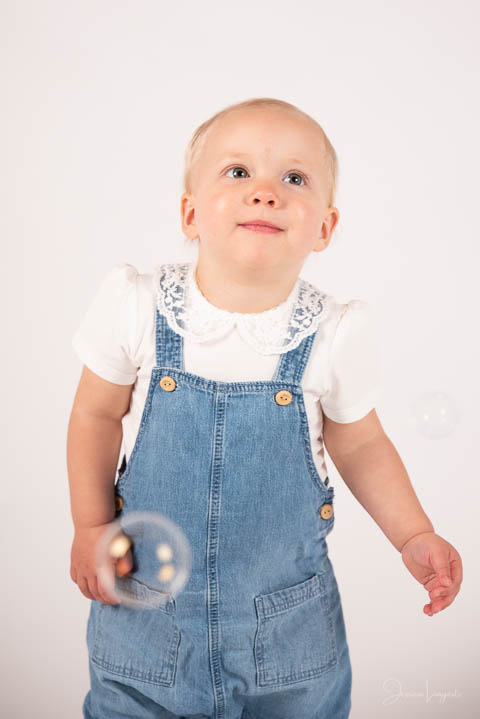 Charmig 1,5-åring som precis som de flesta andra barn upplevde studion och rekvisitan mycket spännande. Såpbubblor, den lilla röda bilen, bollhavsbollarna och gosedjuren brukar väcka uppmärksamhet. Att se dessa små personer med nyfiken blick se sig om i studion, leka kurragömma och utforska ny mark är en upplevelse varje gång. Alvas fotografering delade vi upp mellan en stunds studiofotografering, sedan gick vi ut bland de vackra höstlöven och fortsatte fotograferingen där i det underbara vädret. Mina paket som ni ser på hemsidan är att se som en rekommendation. När ni bokar fotografering hos mig så finns det utrymme för kreativitet och unika lösningar som passar er!