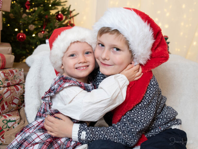 Julkortsfotografering med två flickor som med stor tydlighet visade att dom gjort detta tidigare. Lille Gustav däremot – han hade inte påbörjat sin modellkarriär ännu. Det ska vara en första gång för allt, här blev det både modellande och chokladätande…..