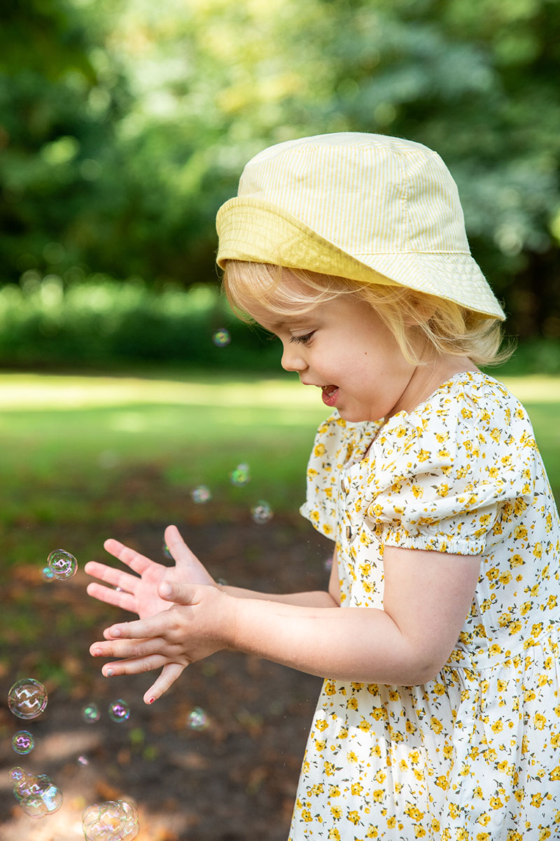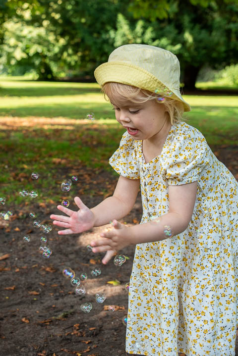 Första gången jag träffade Embla och hennes föräldrar var den 1 juni 2019, för ganska exakt två år sedan. Då fotade jag henne i min dåvarande studio i källarvalvet inne på Borgeby Slott, men även i den vackra slottsparken. Det är fantastiskt roligt att följa barn i deras olika åldrar och för det är jag väldigt tacksam. När fotosessionen var över och vi skulle passera min studio (den nya) så säger Embla “var är gungstolen”? Gungstolen? svarade jag – “Ja, den lilla vita” sa Embla. Jag tittade på Emblas föräldrar och frågade om dom hade tittat på bilderna nyligen från förra fotograferingen? Nej svarade dom i kör. Embla tittade på mig som ett levande frågetecken och så sa hon igen “var är den lilla vita gungstolen”? För två år sedan blev Embla fotograferad i min lilla vita gungstol och hon mindes den….. Snacka om att jag tappade hakan! Det jag tror att Embla kommer att minnas mest från denna fotograferingen är den lilla såpbubblemaskinen som användes flitigt.
