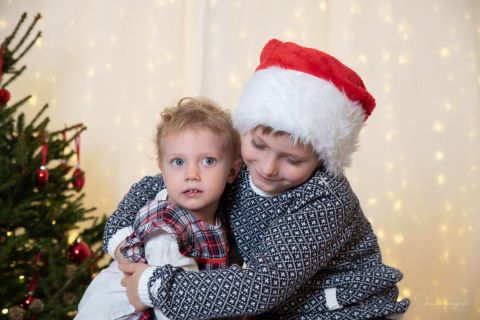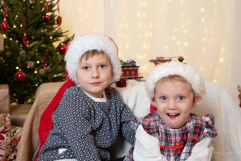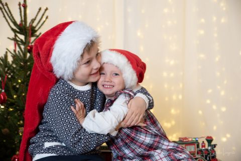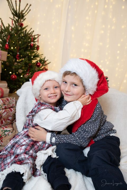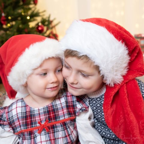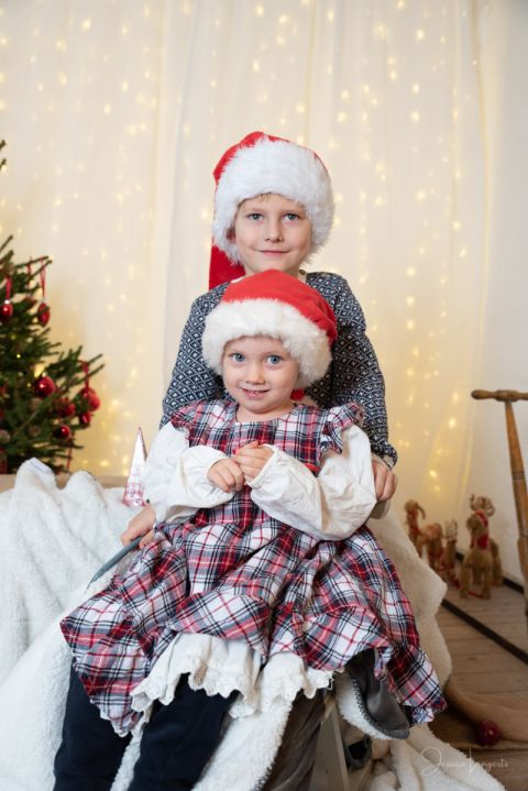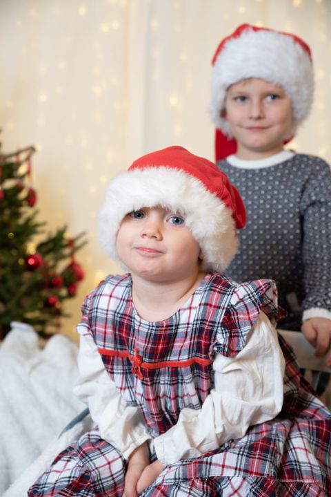 Idun och Noah julen 2018, julkortsfotografering drop-in i min studio som då var i källaren på Borgeby Slott.