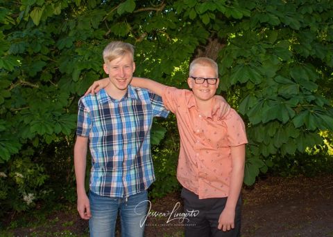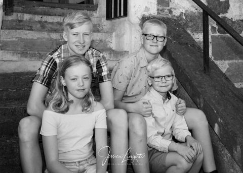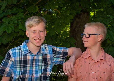 Kusinerna Junholt sammanstrålade för fotografering i Borgeby Slottspark. Min gamla ram är en uppskattad rekvisita som roar både gamla och unga.
