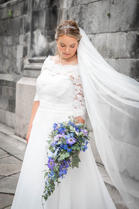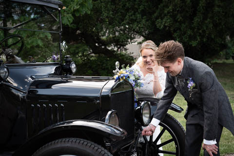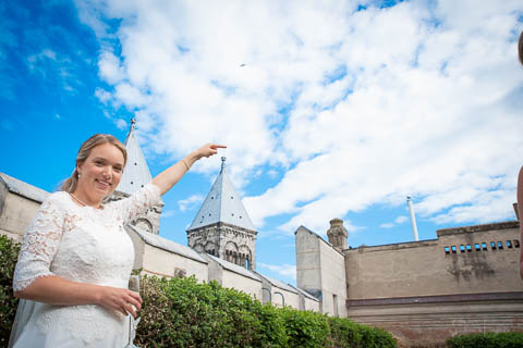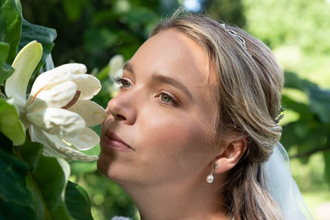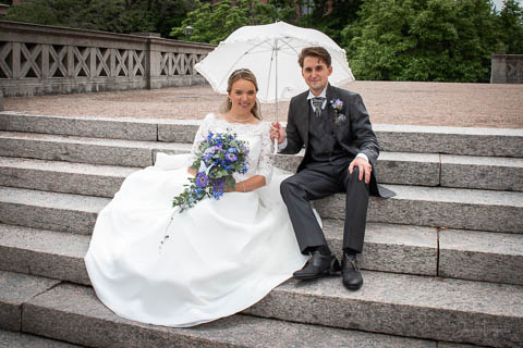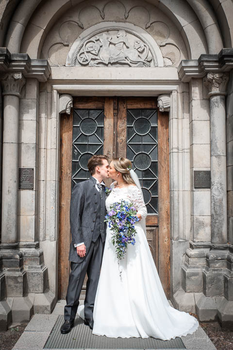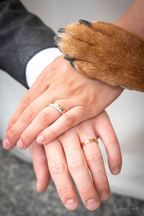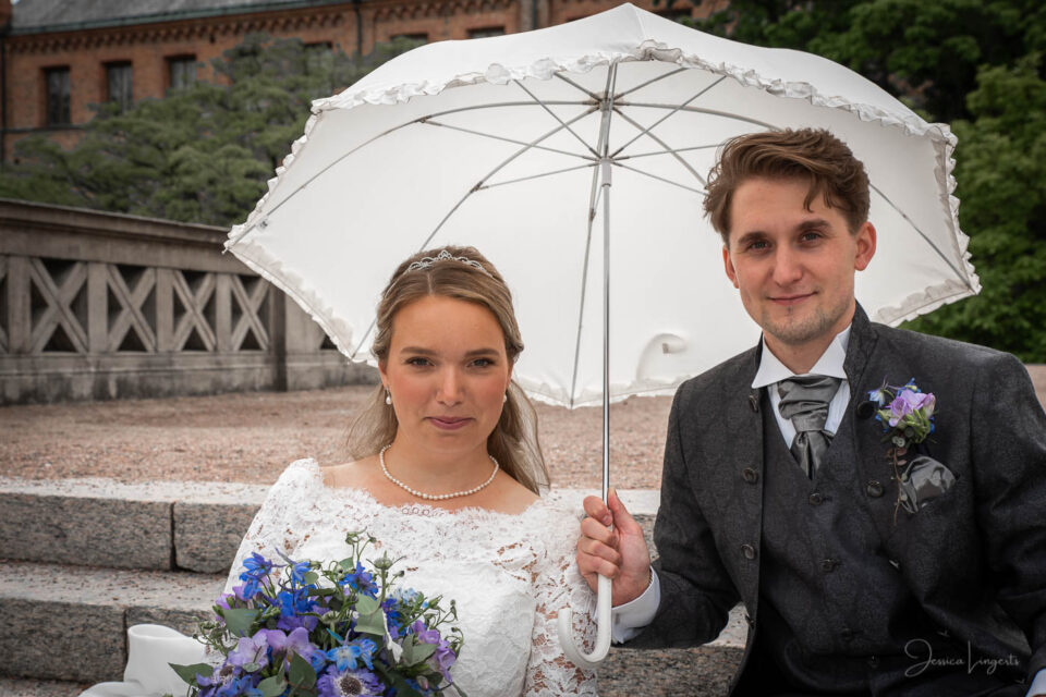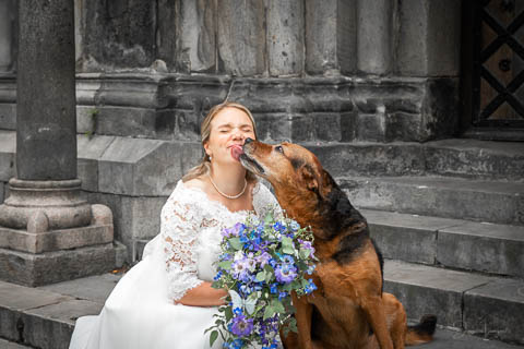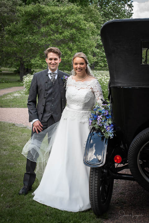 Sandra och Magnus hade hyrt Hypoteket i Lund för sitt bröllopsfirande. Hos frisören var förberedelserna i full gång när jag anlände, vi gick tillsammans upp till Hypotekets lägenhet och med de vackra fönsterna som bakgrund tog vi många bilder. First Look med en brudgum som grät hejdlöst, porträttfotografering i Lundagård med hela följet och Cindy – den fyrbente familjemedlemmen. Vigsel i en fullsatt Domkyrka och därefter bilfärd till Botaniska Trädgården för ännu mer porträttfotografering. Det var en underbar dag, med ett underbart brudpar!