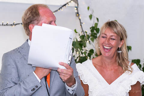 Jag fick ett samtal från Martin…. jo – det är så här att jag och min sambo ska gifta oss och vi undrar om du skulle kunna svänga förbi och ta några bilder? “Svänga förbi och ta några bilder”? Låt oss prata igenom era önskemål sa jag. Det visade sig bli mer än ett par bilder, tre timmars rent nöje. Ett mer avslappnat bröllop har jag nog aldrig varit på. Stort tält, en scen för vigsel, virkade vimplar, mjukglassmaskin, bubbel, popcornmaskin, snacks och ett brudpar i sneakers! Det visade sig att det skulle bli en hejdundrande fest som började direkt när gästerna kom så när det var dags för vigsel, efter två timmars minglande – då var stämningen i topp må ni tro! Regnet skvalade ner för tältduken, men inne i tältet sken solen och lyckan! Fotoboken som jag tillsammans med brudparet skapade blev väldigt fin, det är något jag varmt rekommenderar att göra! Bilderna ska inte ligga kvar på hårddisken!