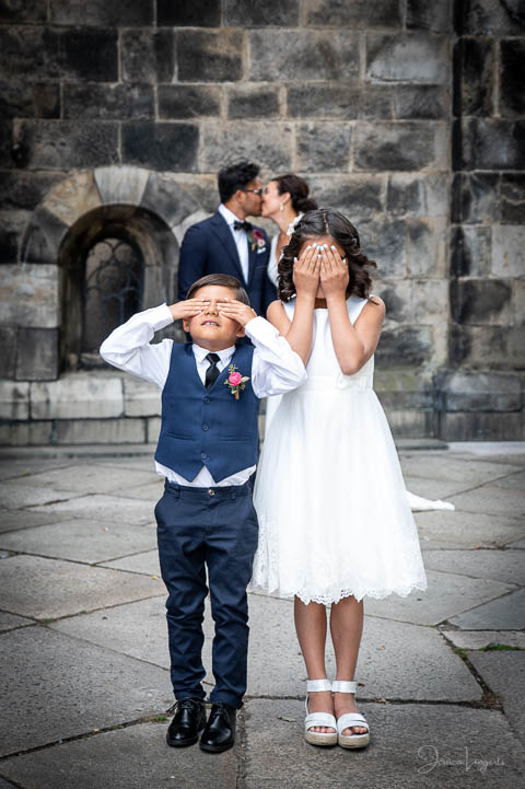 Med vigsel på Hypoteket och önskemål om “Lundabilder” så var platserna för porträttfotografering ganska enkla att välja ut. Det vackra kvarteret bakom Kulturen, Lundagård och för att inte tala om byggnaden där Lunds Stift håller till. Alltså wow, vilken innergård! Vi hade ett perfekt väder med sol och härliga vindar som fångade Tanias slöja till magi. Barnen var på strålande humör och så fina i klänning och kostym. Domkyrkan håller på att renoveras, ena sidan bara – upptäckte vi till vår stora glädje. Så bilder med Domkyrkan i bakgrunden blev det. Dan Hansson vigselförrättare, gjorde ett fantastiskt bra jobb – precis som vanligt. The Happy Greenhouse stod för blommorna och inne på Hypoteket stod glasen och gnistrade. Bilderna levererades för en tid sedan och därefter har vi haft det stora nöjet att skapa en fotobok tillsammans, som faktiskt är på g vilken dag som helst. Fotoboken med omslag av beige linne och tryck i kopparfärg är ett hantverk i fantastisk kvalitet. Grattis igen till herr och fru Weidenmark och stort tack för att just jag fick äran att föreviga er stora dag ♥