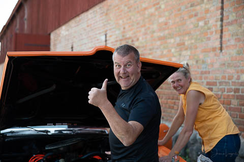 Nu börjar vi bli bortskämda med soliga tisdagskvällar och tusentals besökare, det har blivit en riktig folkfest! Idag fick jag uppleva “you have been ducked”, söta små badankor som sätts ut på jeepar, ett amerikanskt påfund om jag förstår det hela rätt. Anders “Nisse” arrangören med det stora hjärtat och Tine, en av stjärnorna som vinkar bilar fastnade på bild denna gången.