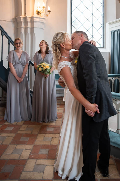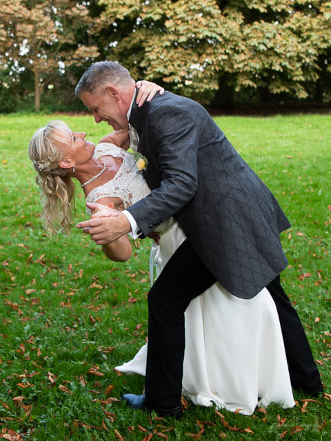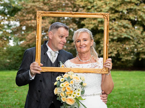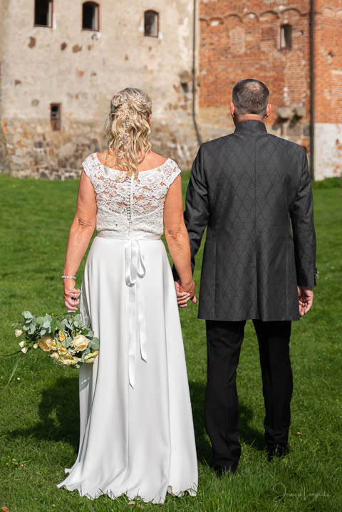2019 nappade Wiveka och René på mitt fotoerbjudande som jag då hade på Borgeby Slotts Fest- och bröllopsdag. Kemin stämde och jag fick uppdraget att bli deras bröllopsfotograf lördagen den 22/8-2020. Som så många andra bröllop så fick deras bröllop skjutas på framtiden pga pandemin och en av döttrarna kunde inte resa ut från Nederländerna till Sverige. Bröllopet blev ombokat till lördagen den 11/9-2021 och jag blev än en gång tillfrågad. En härlig dag med lagom vind, lagom temperatur och lagom mycket moln – fram tills det var dags att gå ut ur kyrkan. Då började det regna och sen brakade det loss i ett hällande ösregn. Brudparet bestämde sig för att åka en längre tur i limousinen än vad som egentligen var planerat och eftersom jag inte ville missa deras entré så stod jag och väntade utanför festlokalen. Dubbla paraply räddade mina kameror, men mina annars så smygvänliga skor gnisslade när jag gick med dom under middagen. Vad gör man inte? Detta var ett härligt 6-timmars uppdrag med en stor underbar familj!